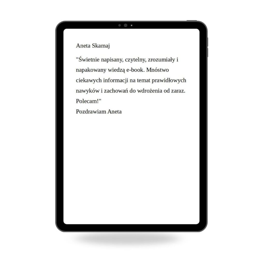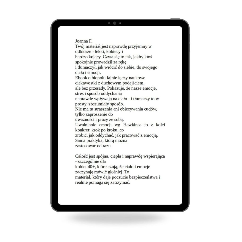 Możesz mi zaufać, bo wszystko, o czym piszę, sprawdziłam na sobie i osiągnęłam efekty. Poradziłam sobie z objawami menopauzy i dziś żyję w harmonii. Napisałam tego e-booka, byś i Ty mogła odnaleźć w sobie moc do życia w zdrowiu i radości. Jestem przekonana, że kiedy tylko zaczniesz wdrażać moją wiedzę, jakość Twojego życia poprawi się.